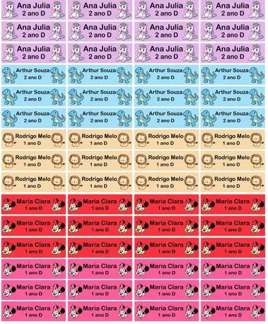 Aproximadamente: 50 etiquetas contendo o nome da criança para colar no material escolar
