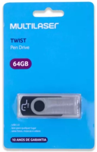Com capacidade de 64GB, o pendrive Twist da Multilaser, facilita a sua vida. Faça back up, transfira dados, compartilhe suas fotos, filmes, músicas, dados pessoais, aonde quer que você vá, de qualquer dispositivo com entrada USB.